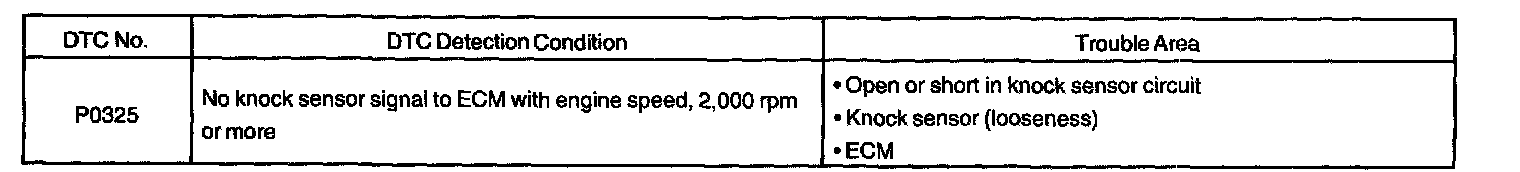 DTC P0325 Knock Sensor 1 Circuit (Bank 1 or Single Sensor)CIRCUIT DESCRIPTION