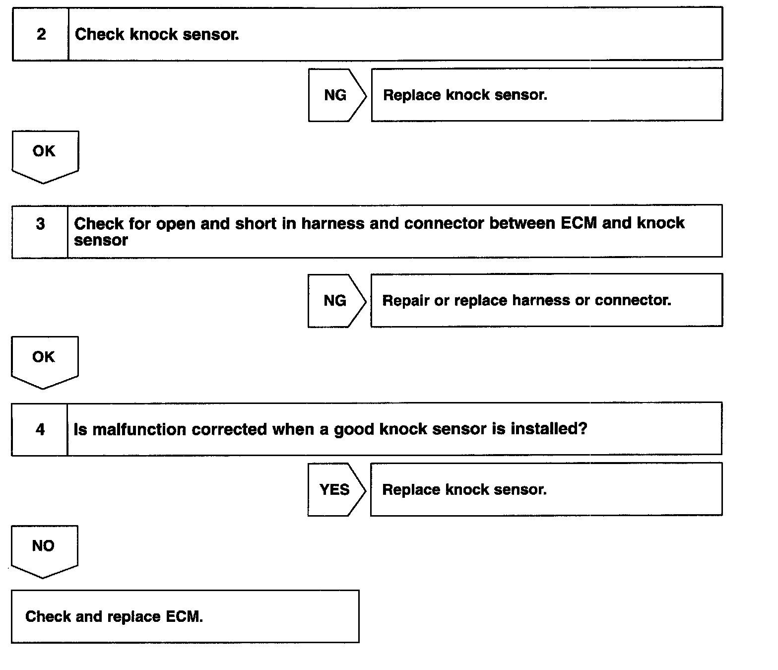 The knock sensor is fitted on the cylinder block to detect engine knocking. This sensor contains a piezoelectric element which generates a voltage when it becomes deformed, which occurs when the cylinder block vibrates due to the knocking. If engine knocking occurs, ignition timing is retarded to suppress it.