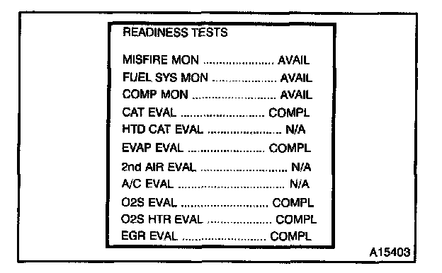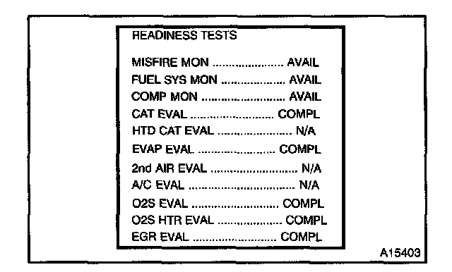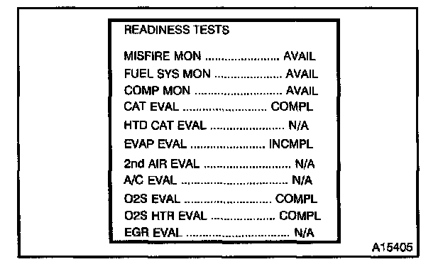 d. Drive the vehicle according to the LA#4 driving cycle. Note the state of the Readiness Tests. They will change to COMPL as the evaluation monitors operate and if the system passes. This procedure may take approximately 20 minutes or more.