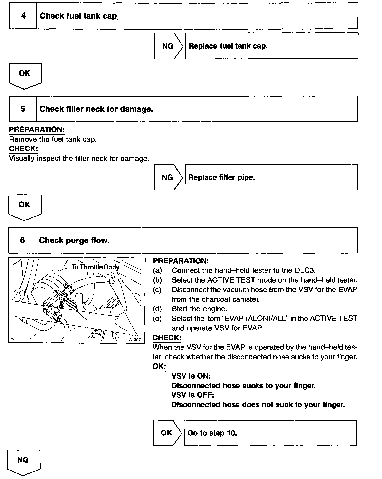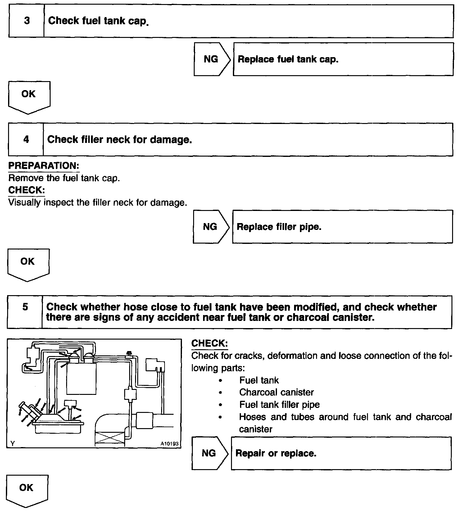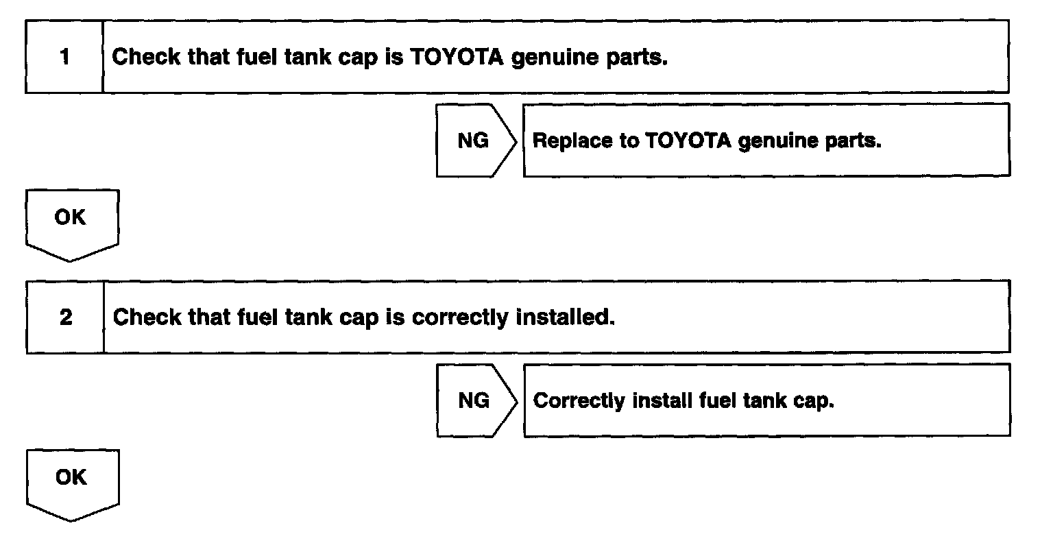 - Ask the customer whether, after the MIL came on, the customer found the fuel tank cap loose and tightened it. Also ask the customer whether the fuel tank cap was loose when refuelling. If the fuel tank cap was loose, it was the cause of the DTC. If the fuel tank cap was not loose or if the customer was not sure if it was loose, troubleshoot according to the following procedure.