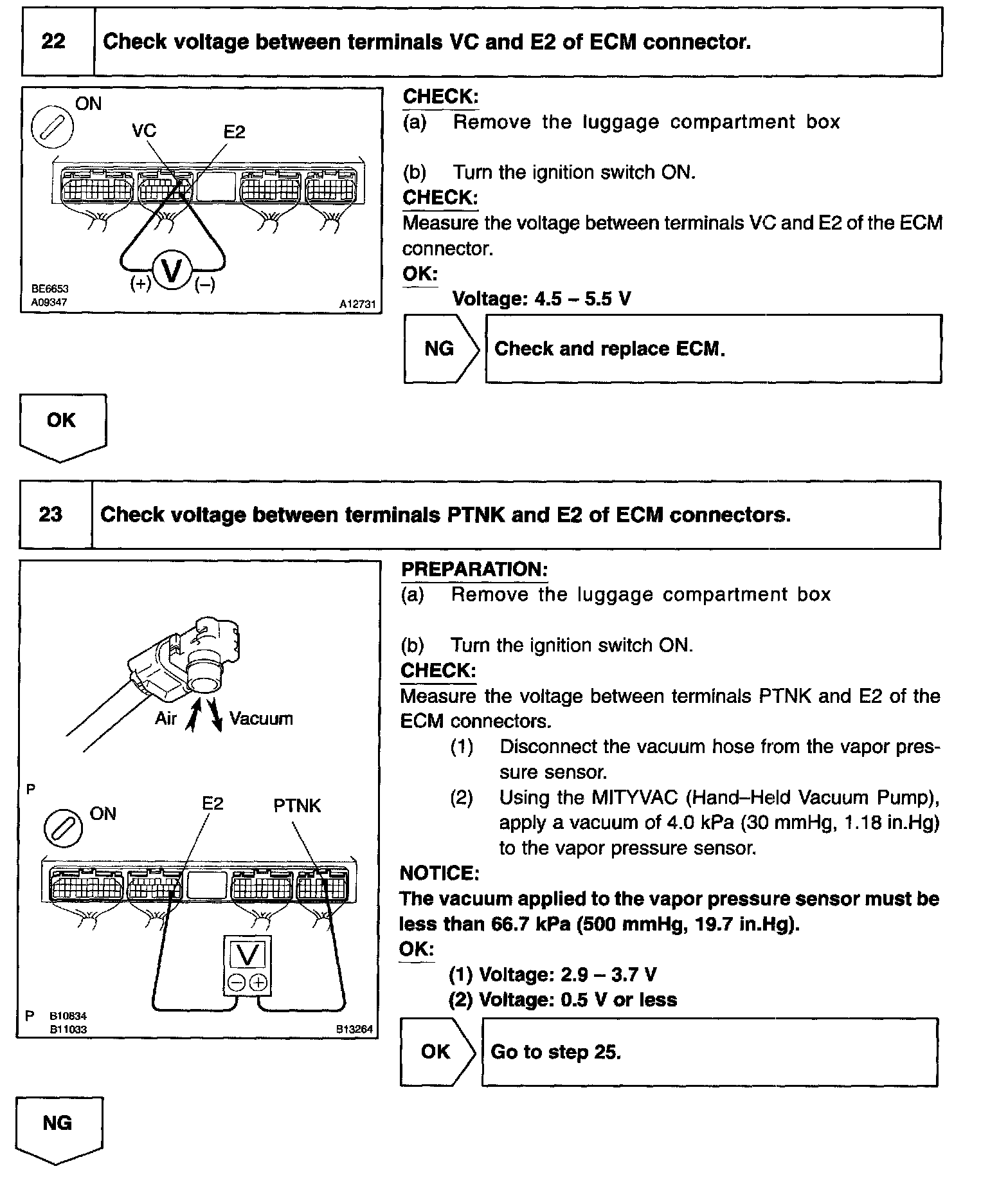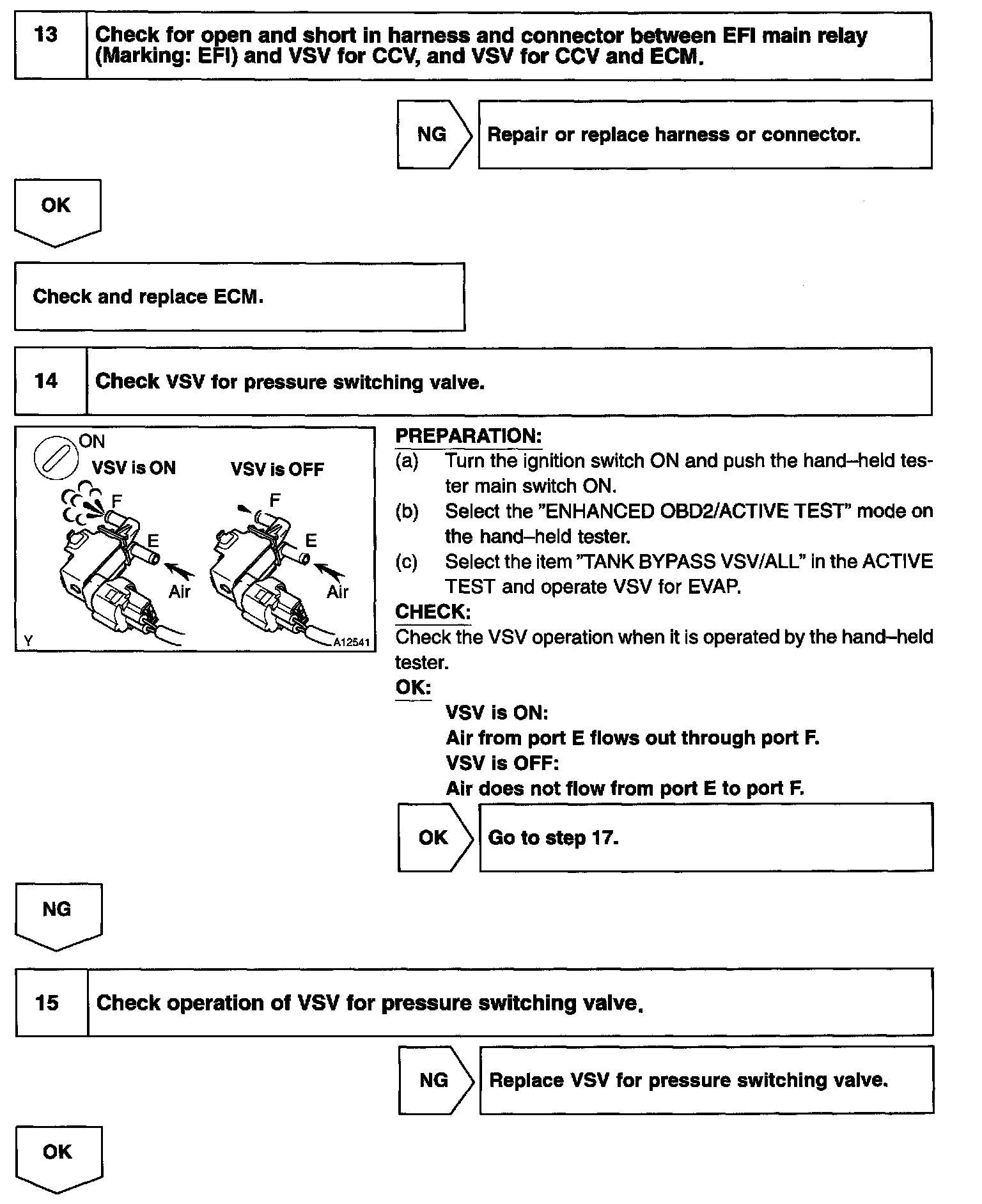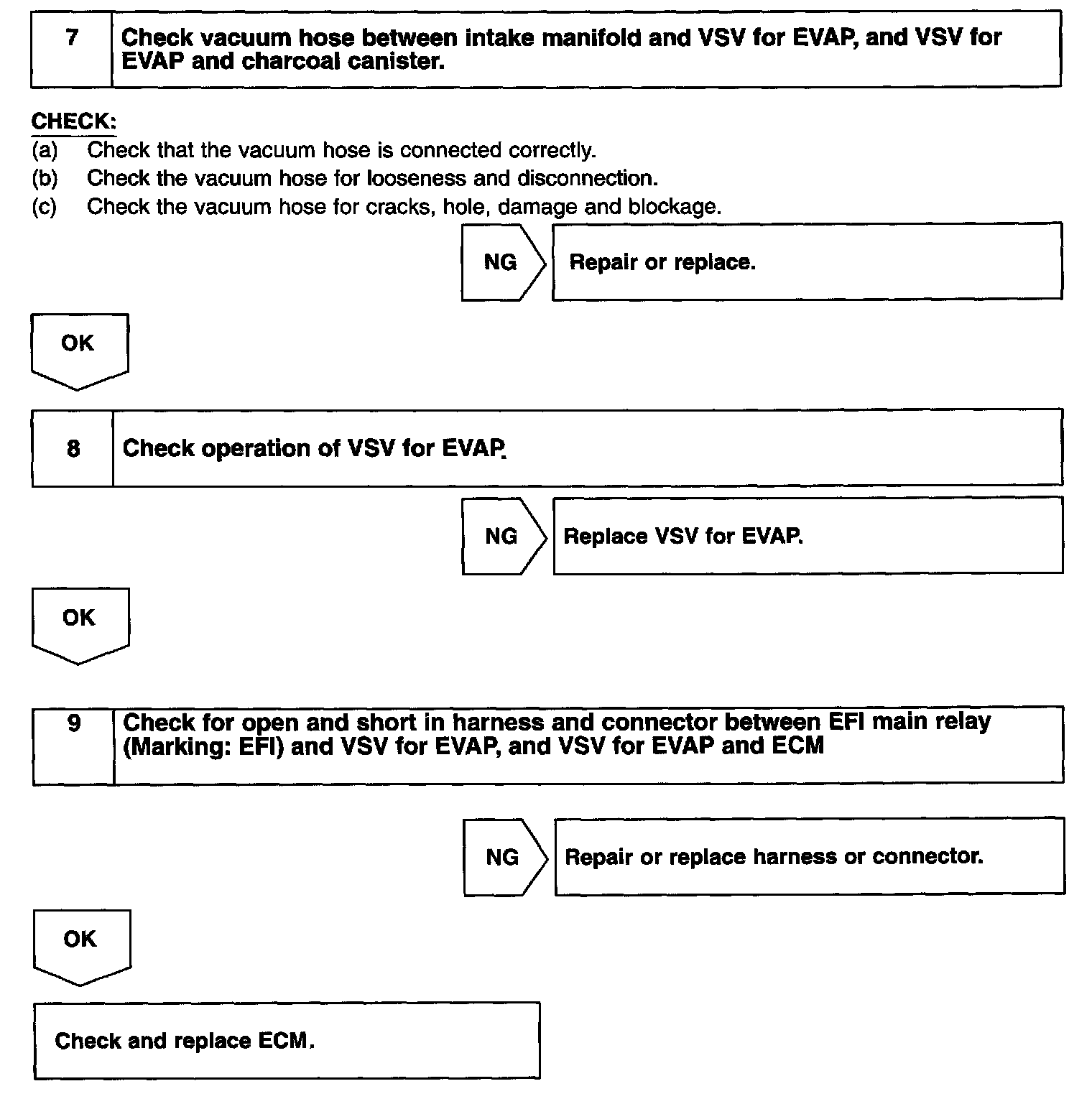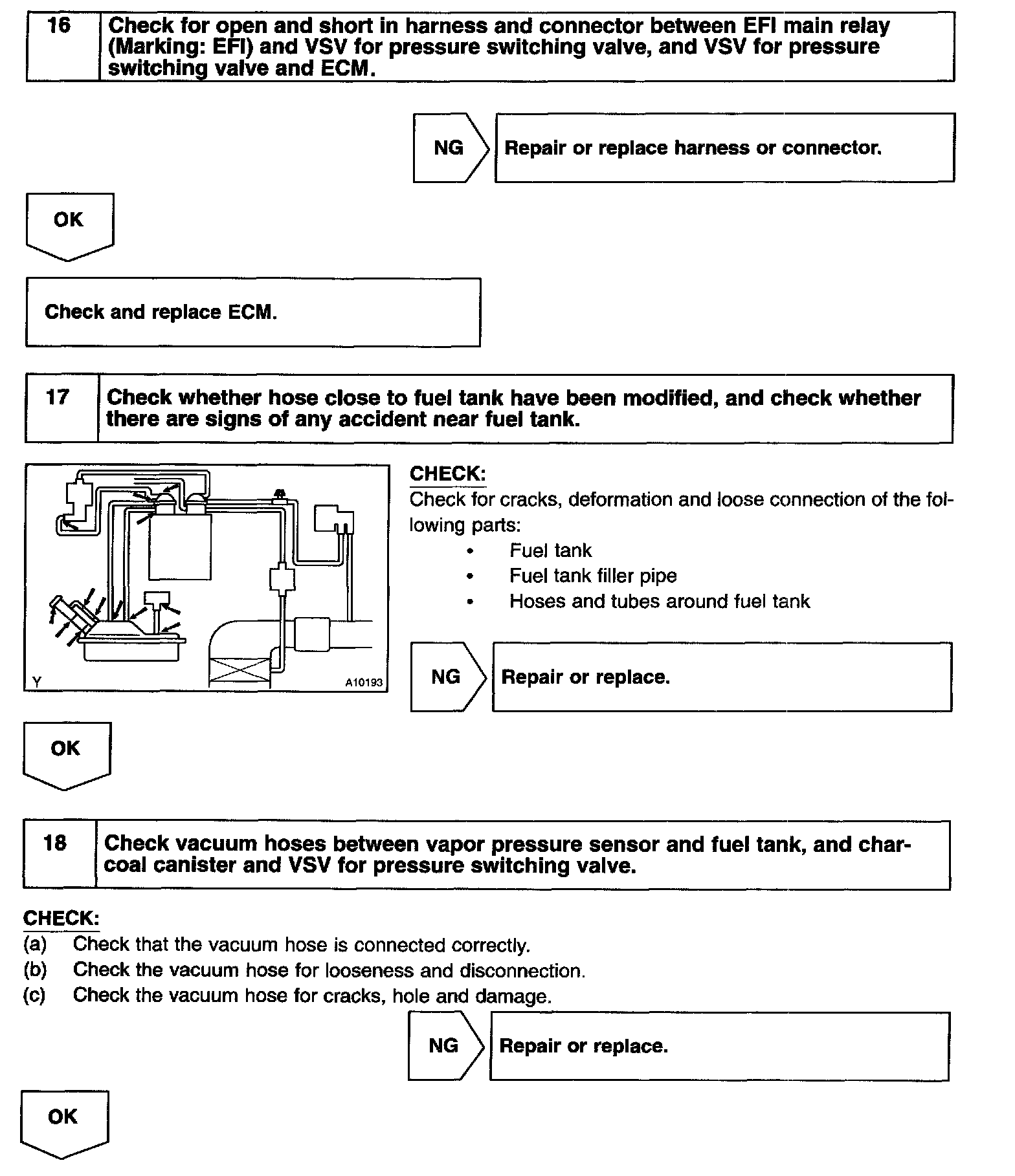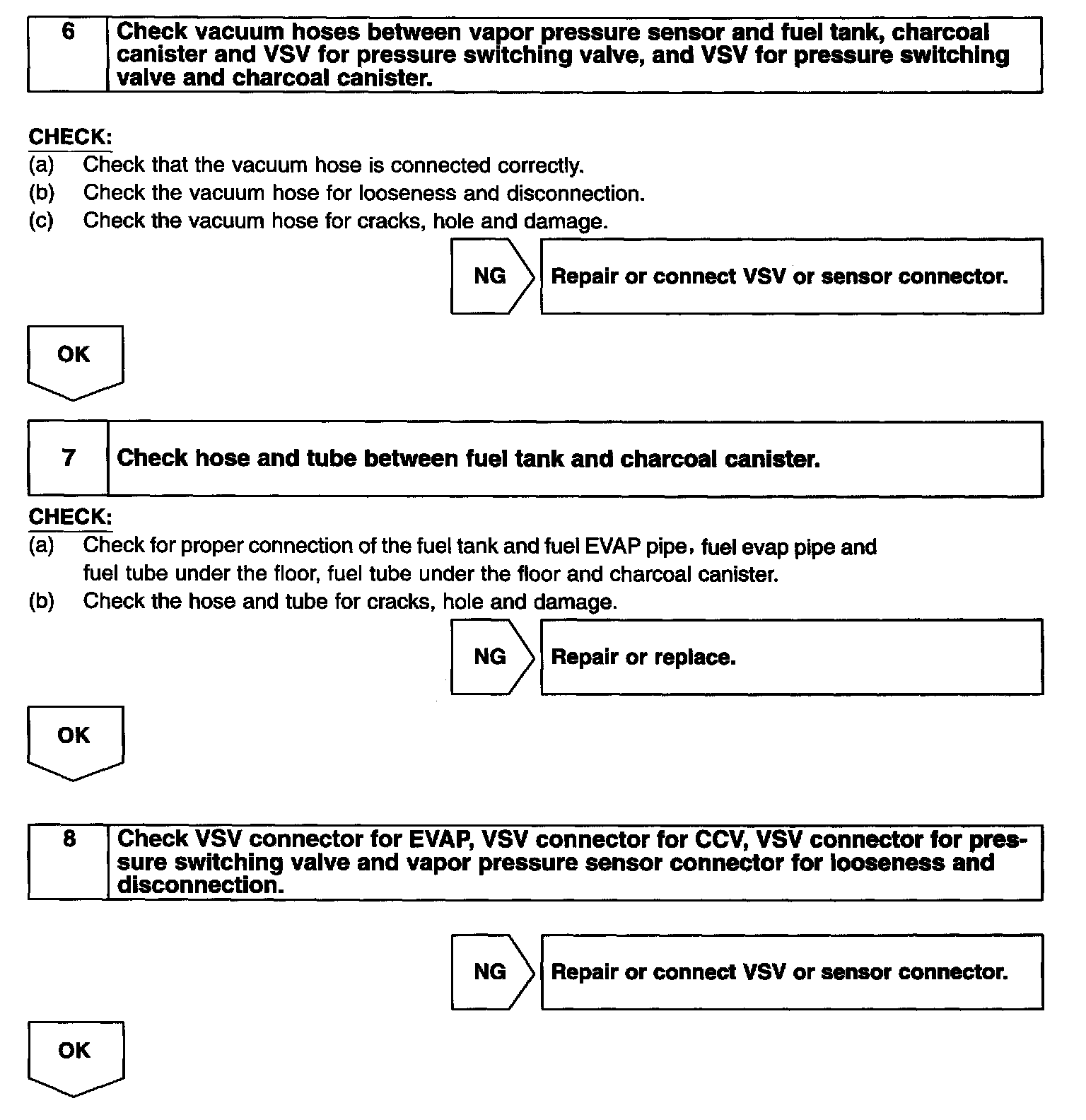The vapor pressure sensor, the VSV for the canister closed valve (CCV) and the VSV for the pressure switching valve are used to detect abnormalities in the evaporative emission control system.