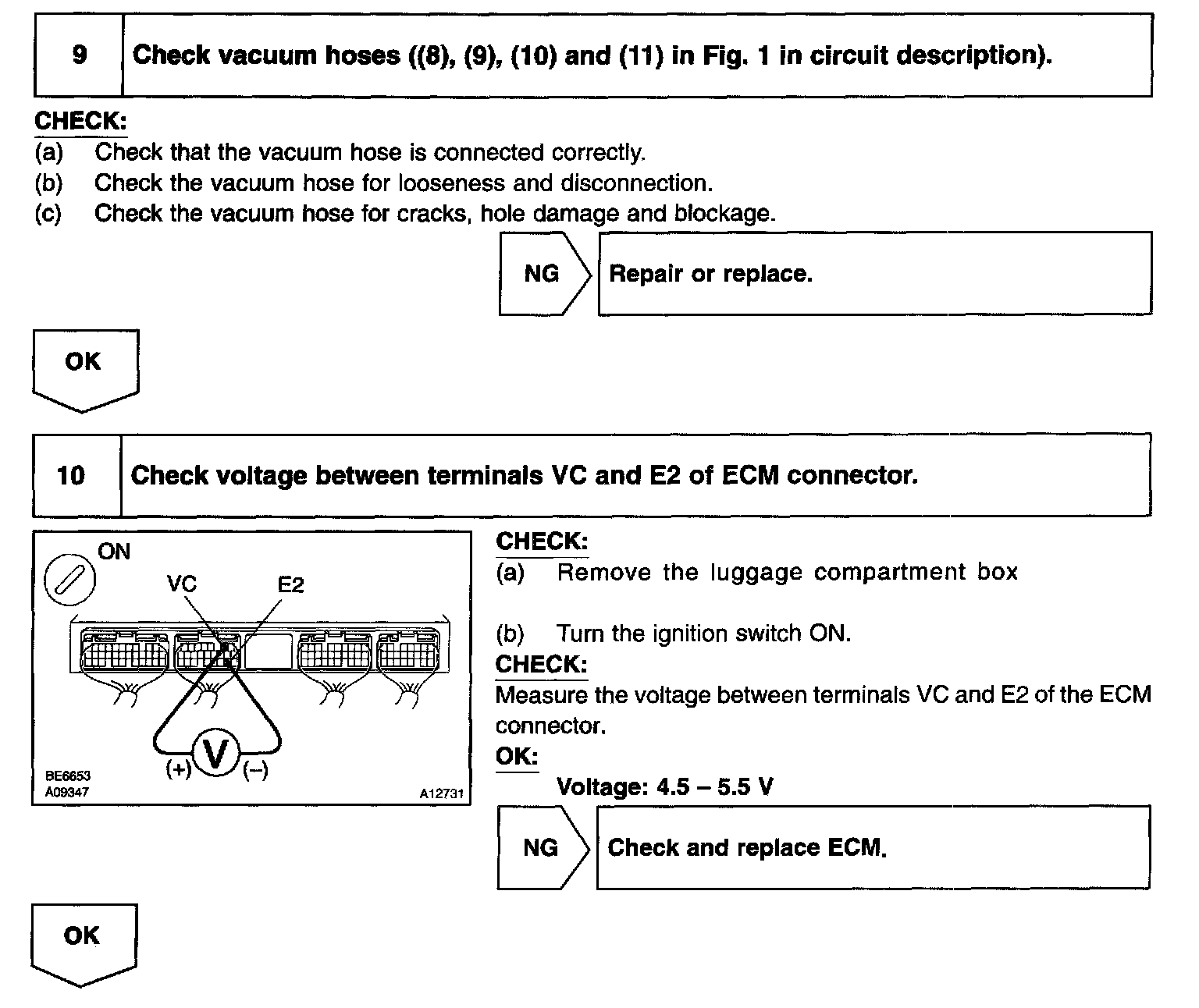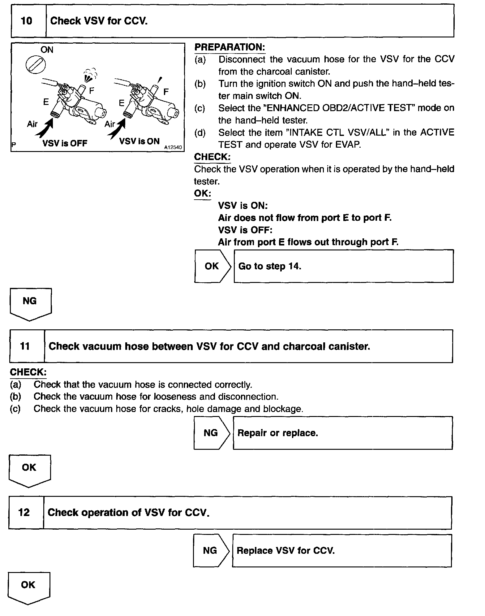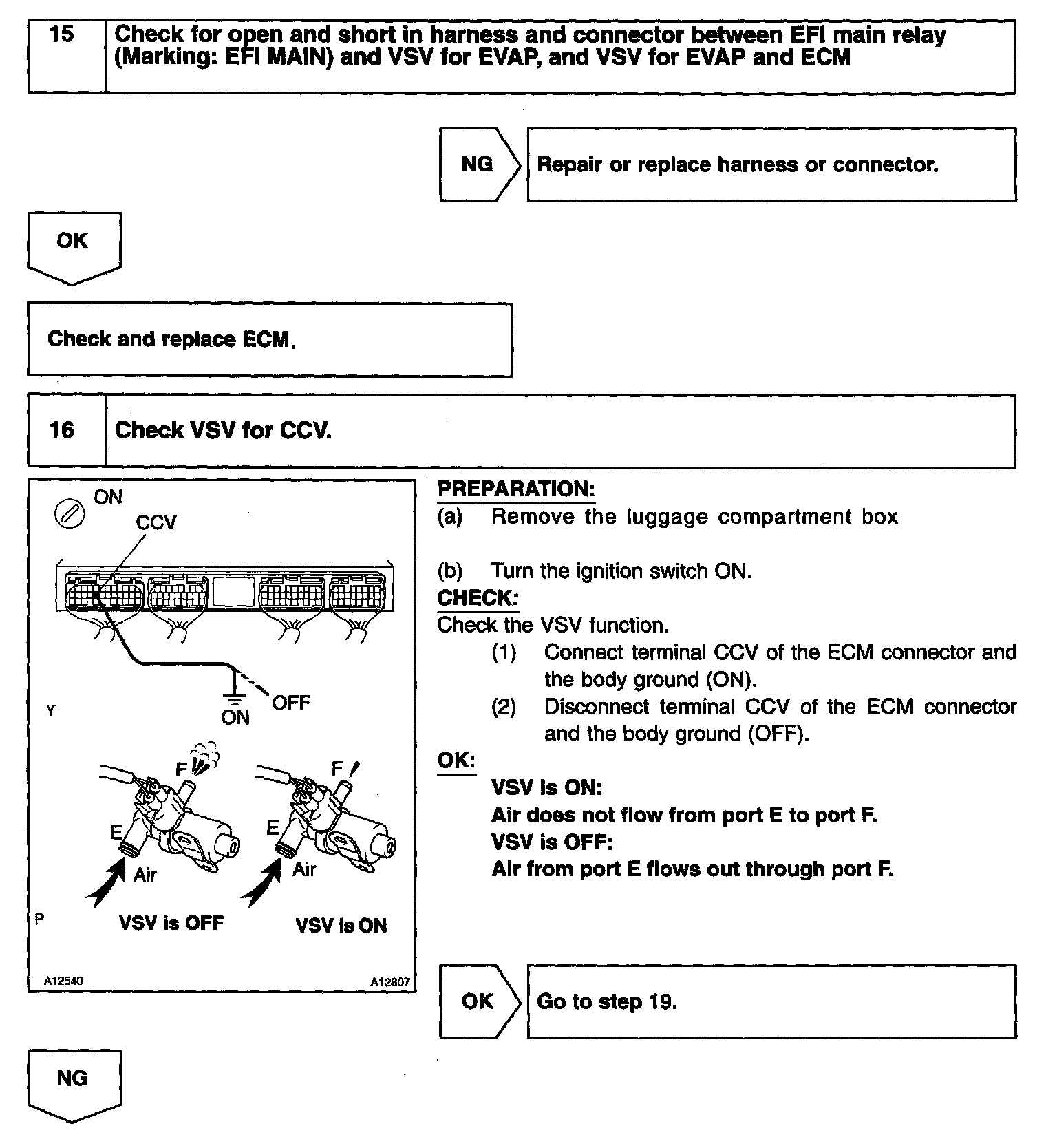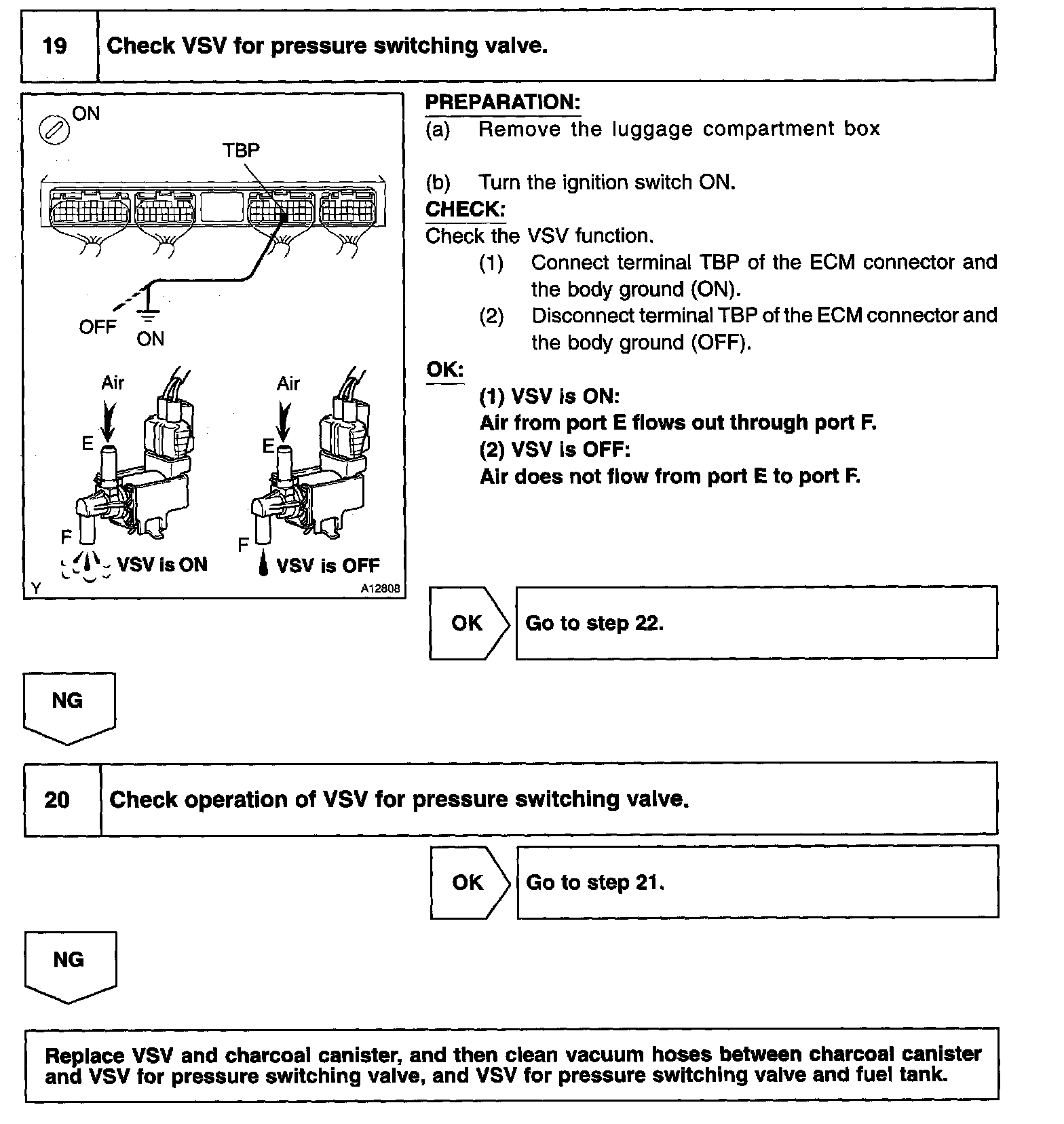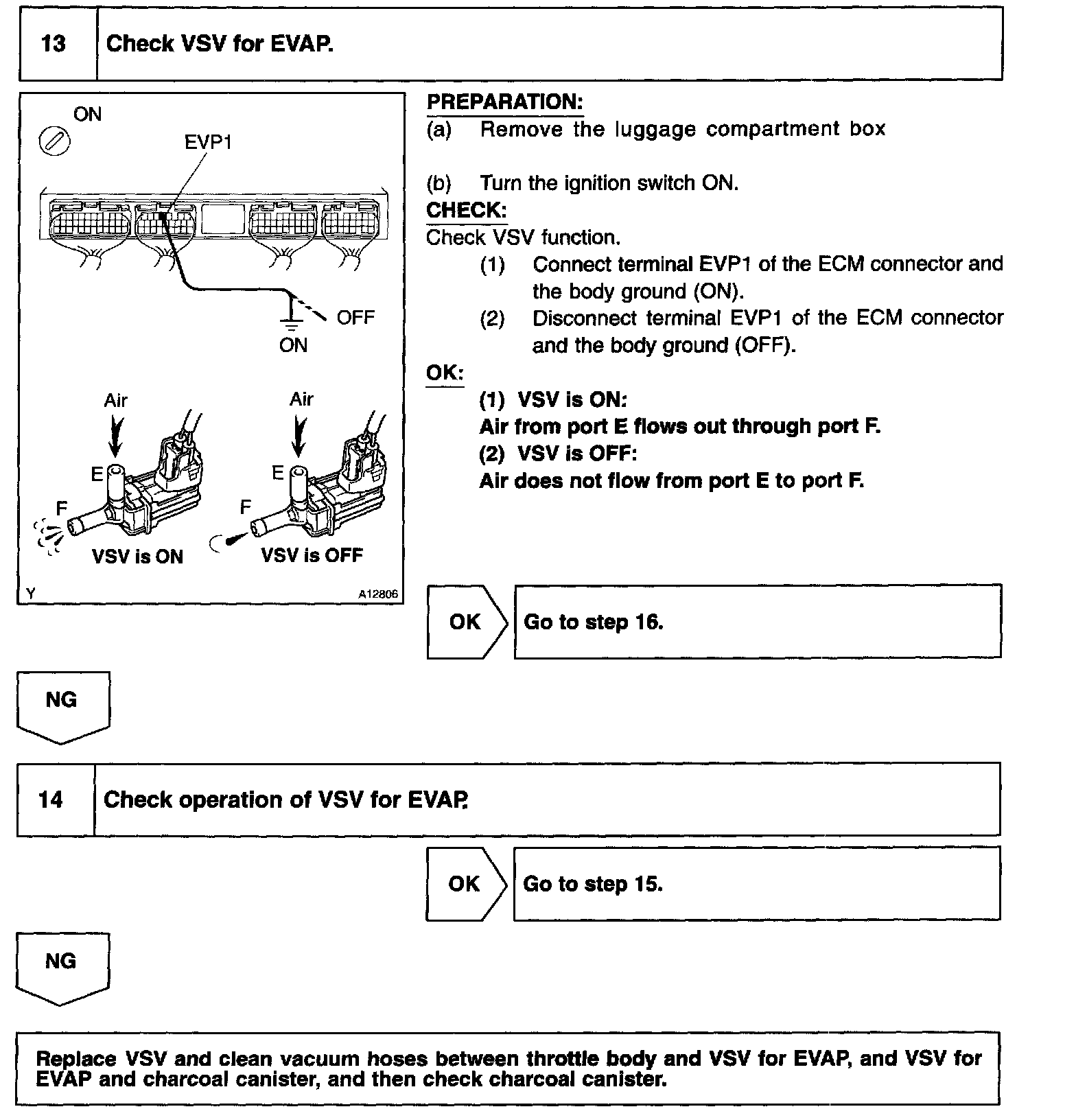 The vapor pressure sensor, the VSV for the canister closed valve (CCV) and the VSV for the pressure switching valve are used to detect abnormalities in the evaporative emission control system.