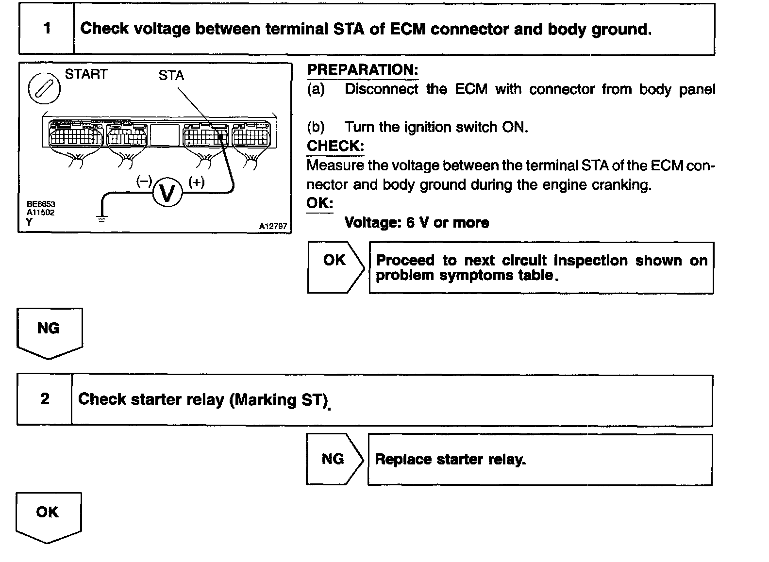 While the engine is being cranked, the battery positive voltage is applied to terminal STA of the ECM.