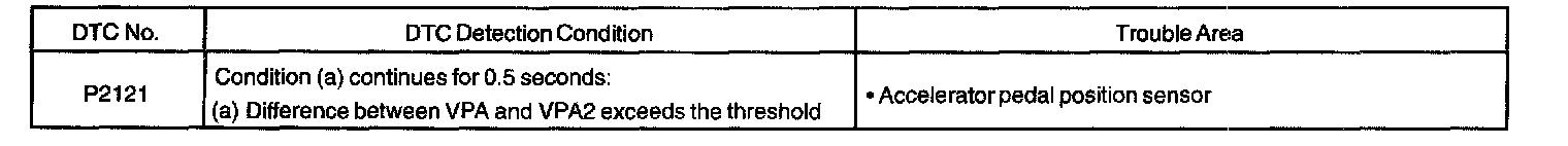 DTC P2121 Accelerator Pedal Position Sensor Performance Problem**: Only for sequential manual transmission vehicle.