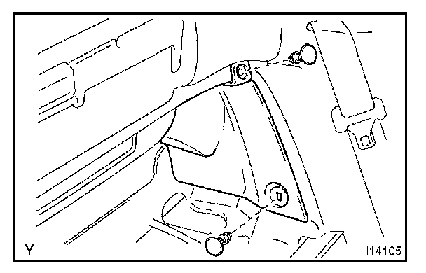 Remove the shoulder anchor mounting bolt and disconnect the front seat outer belt.