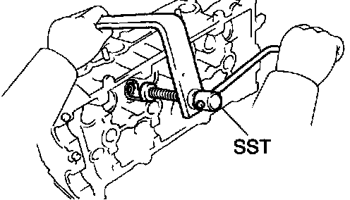 g. Turn the VVT timing sprocket with your hand and lock it at the maximum delay angel position.