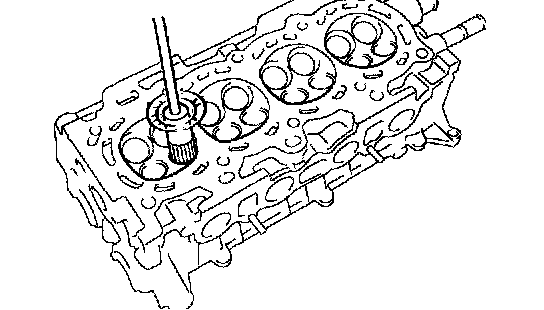 g. Using a sharp 5.5 mm reamer, ream the guide bushing to obtain the standard specified clearance between the guide bushing and valve stem.