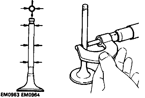 b. Using a micrometer, measure the diameter of valve stem.