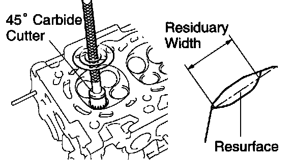 a. Using a 45° carbide cutter, resurface the valve seats. Remove only enough metal to clean the seats.