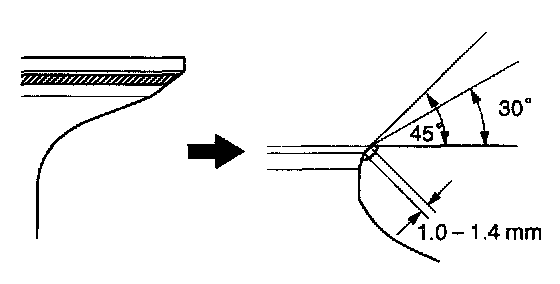 If the valve seat 45° residuary width is less than minimum, replace the cylinder head.