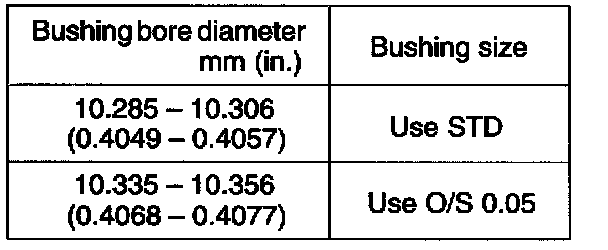 If the bushing bore diameter of the cylinder head is greater than 10.306 mm (0.4057 inch), machine the bushing bore to the following dimension: 10.335 - 10.356 mm (0.4068 - 0.4077 inch)