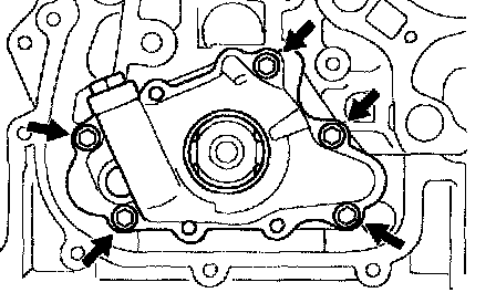 Remove the 5 bolts, oil pump and gasket