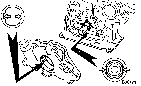 b. Engage the spline teeth of the oil pump drive rotor with the large teeth of the crankshaft, and slide the oil pump.
