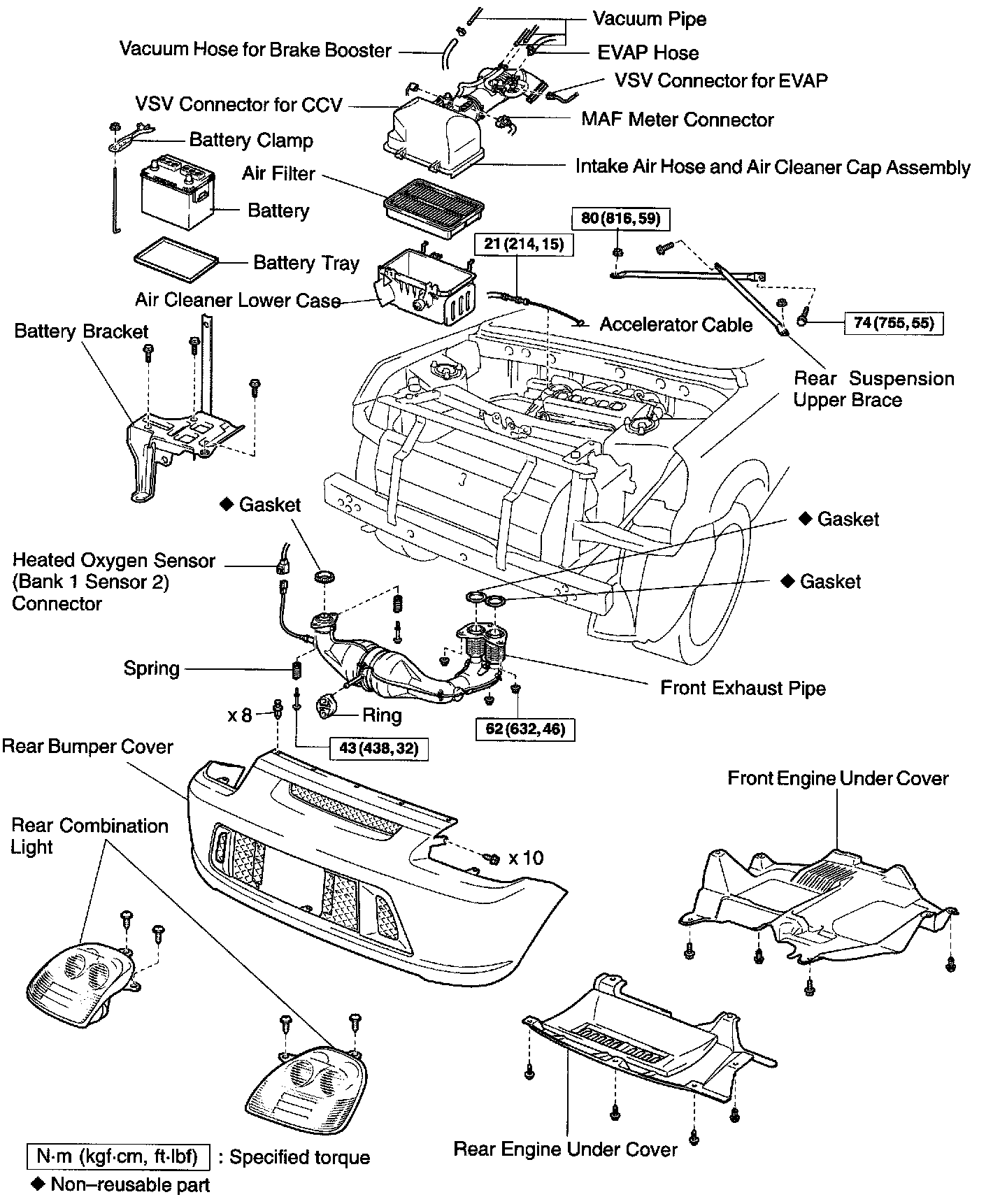 43 Nm (438 kgf-cm, 32 ft. lbs.) for bolt
