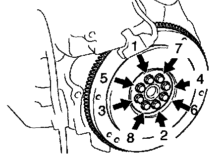 e. Retighten the flywheel bolts by an additional 90°.