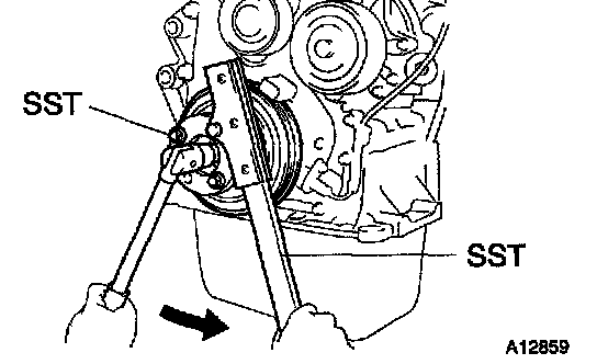 HINT: If necessary, remove the pulley with SST.