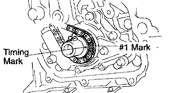 a. Install the timing chain on the crankshaft timing sprocket with the #1 mark link aligned with the timing mark on the crankshaft timing sprocket.