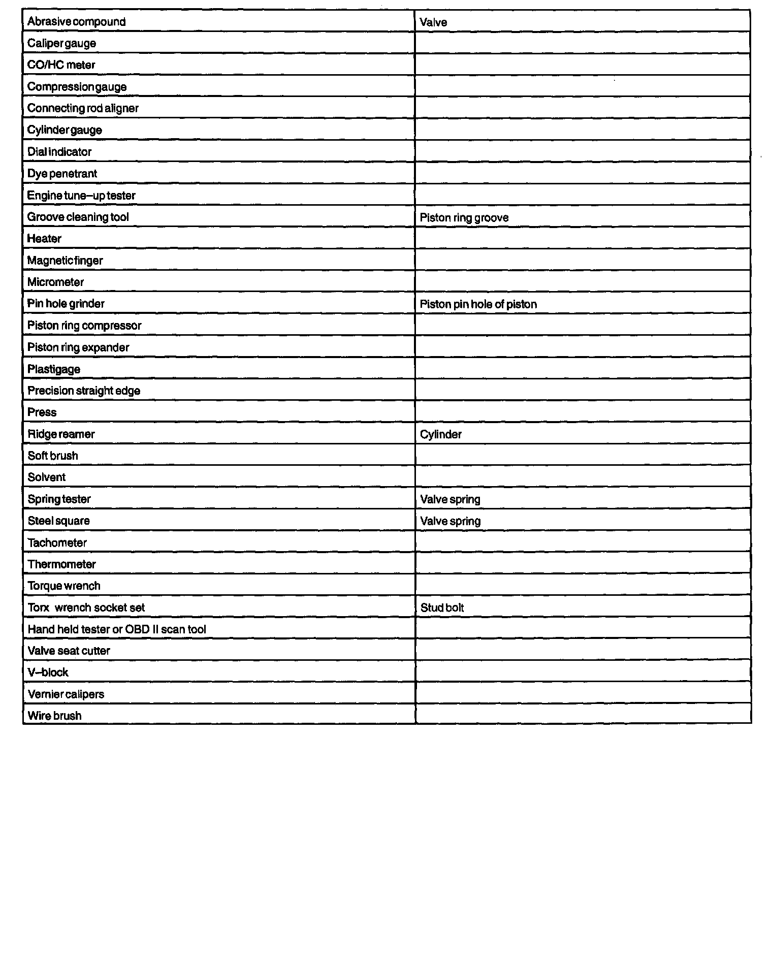 Engine: Tools and Equipment