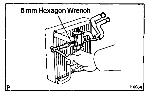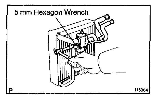 Using a 5 mm hexagon wrench, remove the 2 bolts, and separate the expansion valve and evaporator.