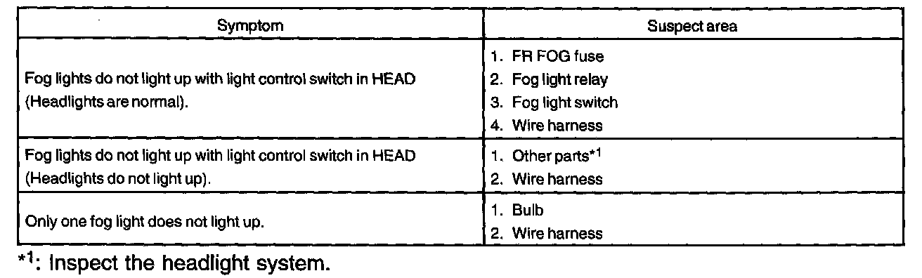 Problem Symptoms Table - Front Fog Light System: