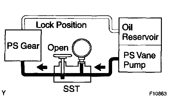 g. With the engine idling and valve fully opened, turn the steering wheel to full lock.