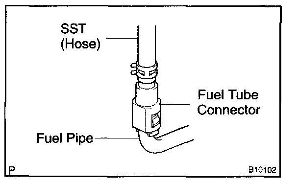 d. Connect SST (hose) and fuel tube connector to the fuel pipe.