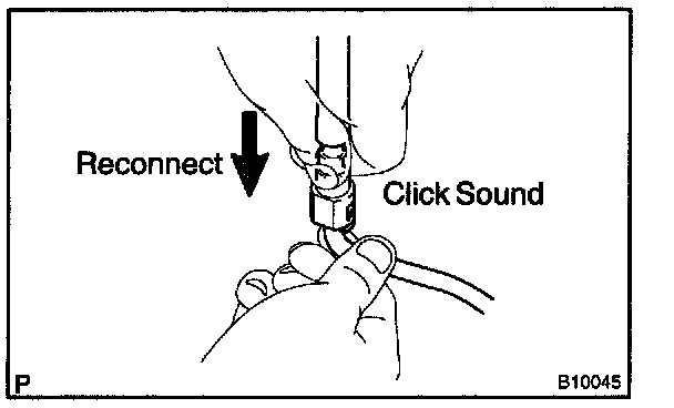 If you have no hand-held tester, connect the positive (+) and negative (-) leads from the battery to the fuel pump connector.
