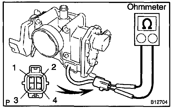 If the resistance is not as specified, replace the throttle body assembly.