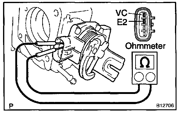 Using an ohmmeter, measure the resistance between terminals VC and E2.