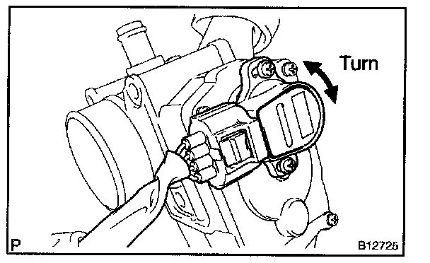 3. Gradually turn the sensor counterclockwise until it touches the throttle valve shaft, and temporarily tighten the 2 set screws.