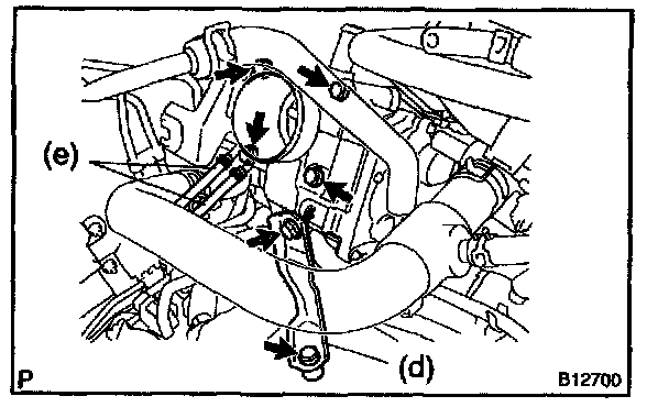d. Disconnect the 2 water bypass hoses from the throttle body.