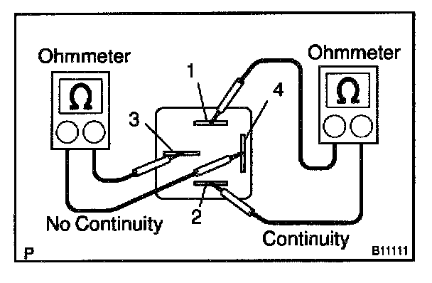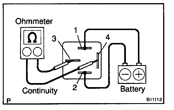 1. Using an ohmmeter, check that there is continuity between terminals 1 and 2.