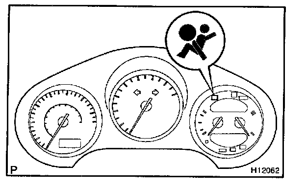 The SRS warning light is located on the combination meter. It goes on to alert the driver of trouble in the system when a malfunction is detected in the airbag sensor assembly self-diagnosis. In normal operation conditions when the ignition switch is turned to the ON position, the light goes on for about 6 seconds and then goes off.