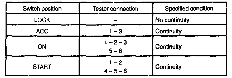 INSPECTION1. INSPECT IGNITION SWITCH CONTINUITY