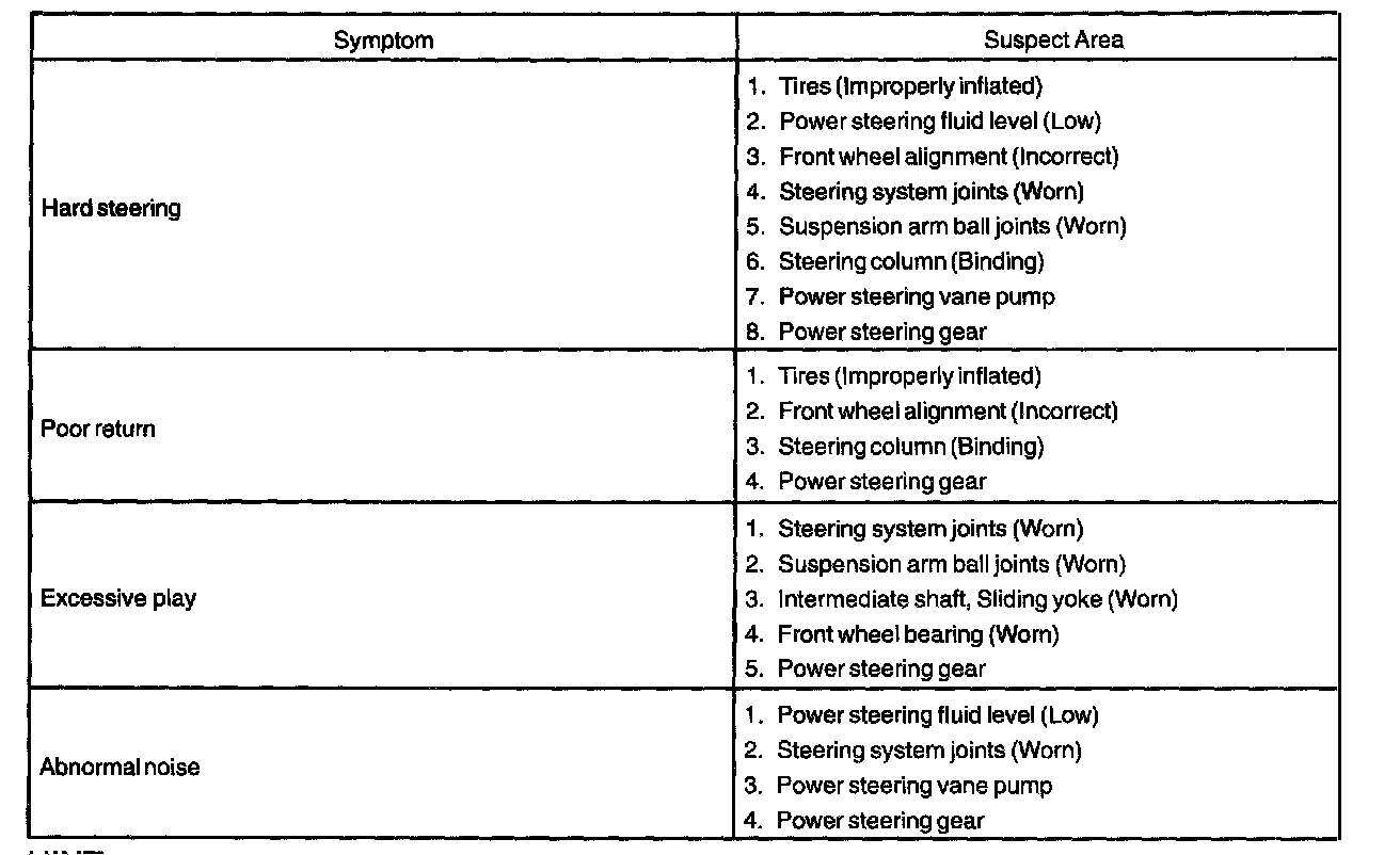 PROBLEM SYMPTOMS TABLESteering: