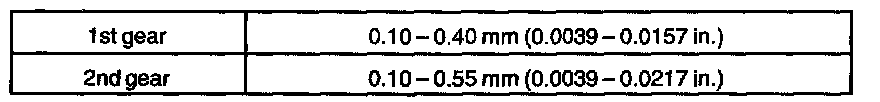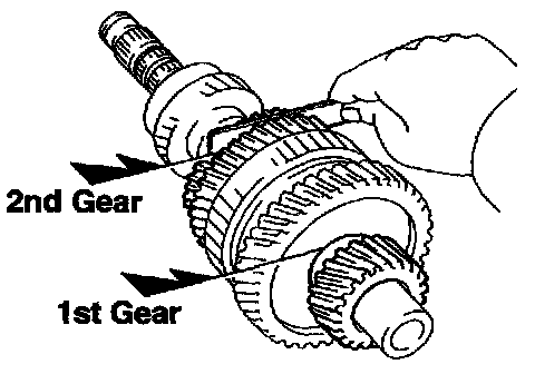 d. Using a feeler gauge, measure the clearance between the synchronizer ring back and gear spline end.