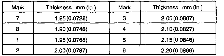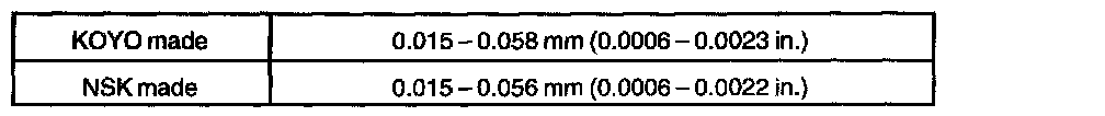 a. Select a snap ring from the table above that will make the thrust clearance of the front bearing inner race less than 0.1 mm (0.0039 inch).