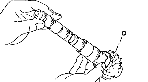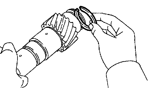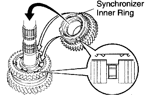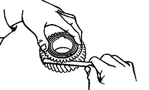 If the braking effect is insufficient, apply a small amount of the fine lapping compound between the synchronizer ring and gear cone. Lightly rub the synchronizer ring and gear cone together.