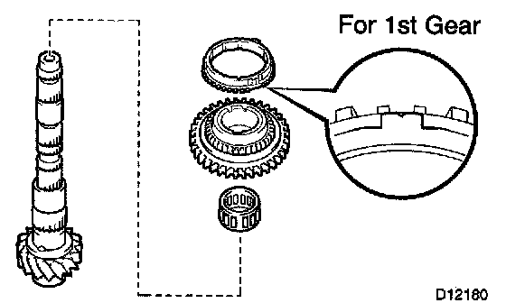 NOTICE: Distinguish the No. 1 synchronizer ring by the teeth on the synchronizer ring.