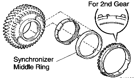 ^ Properly fit the synchronizer middle ring claws into the holes in the 2nd gear.