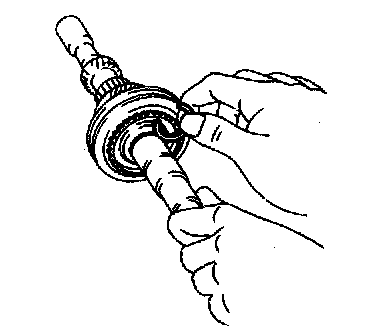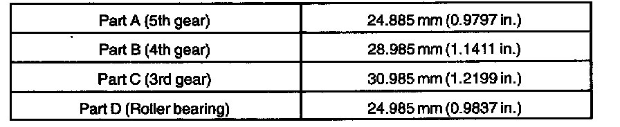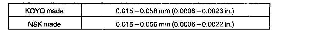 a. Select a snap ring from the table above that will make the thrust clearance of the rear radial ball bearing less than 0.1 mm (0.0039 inch).
