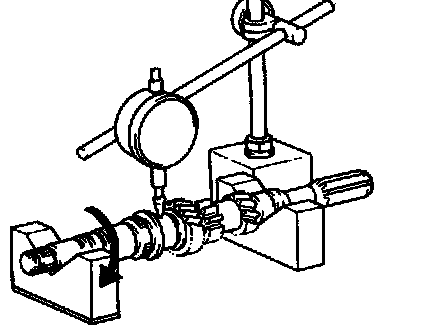 Using a dial indicator, measure the radial clearance between the gear and shaft.
