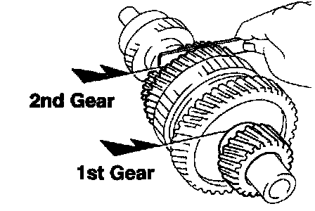 c. Using a feeler gauge, measure the clearance between the synchronizer ring back and gear spline end.