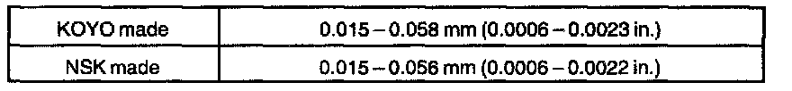 a. Select a snap ring from the table above that will make the thrust clearance of the front bearing inner race less than 0.1 mm (0.0039 inch).