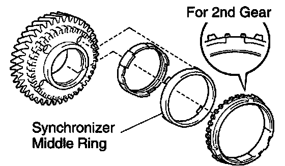 ^ Distinguish the No. 2 synchronizer ring by the teeth on the synchronizer ring.