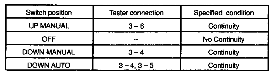 INSPECT POWER WINDOW CONTROL SWITCH CONTINUITY