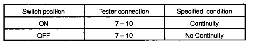 If continuity is not as specified, replace the switch.