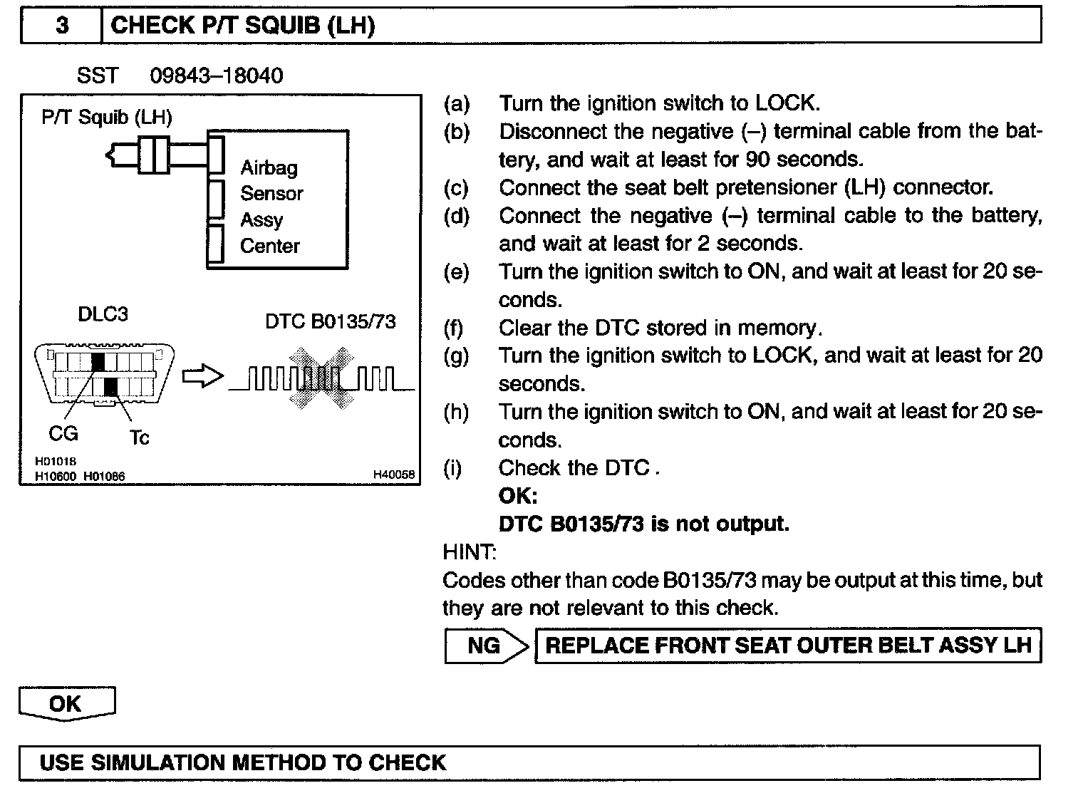 DTC B0135 SHORT IN P/T SQUIB (LH) CIRCUIT