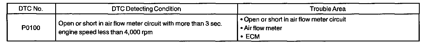 If the ECM detects DTC "P0100" it operates the fail-safe function, keeping the ignition timing and injection volume constant and making it possible to drive the vehicle.