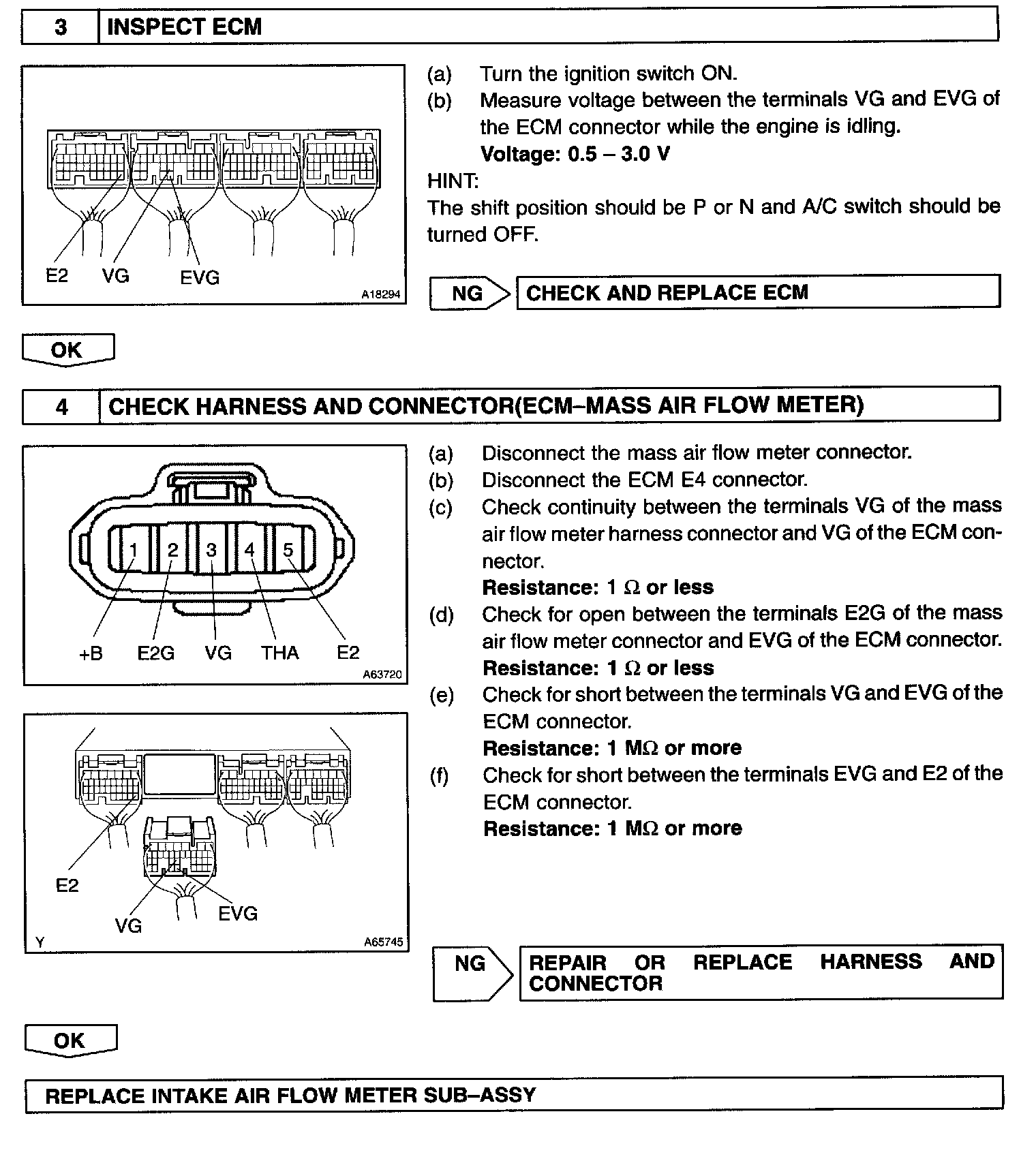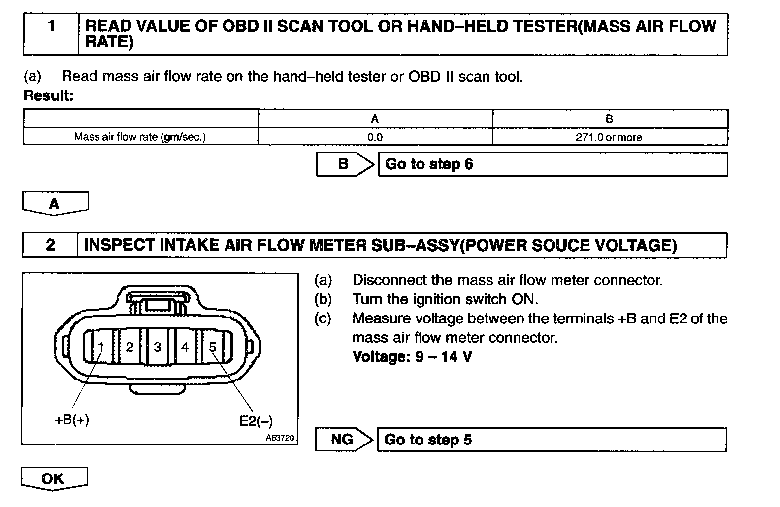 HINT: After confirming DTC P0100, use the OBD II scan tool or hand-held tester to confirm the air flow ratio from CURRENT DATA.